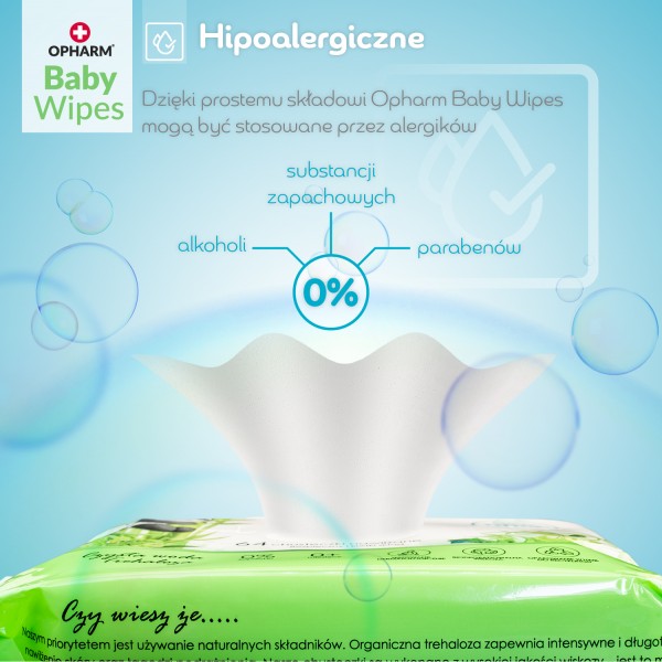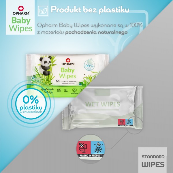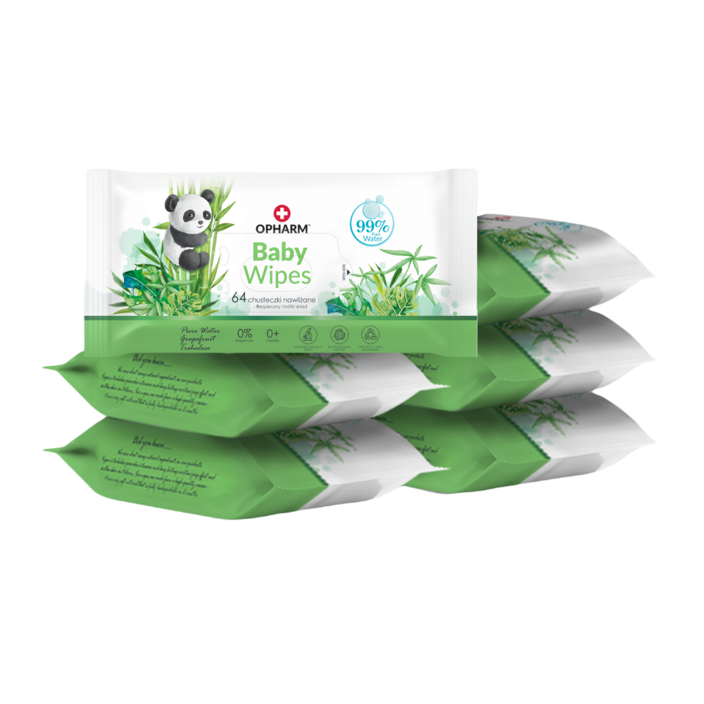 Naturalne chusteczki nawilżane Baby Wipes dla niemowląt i dzieci 6 x 64 sztuki: