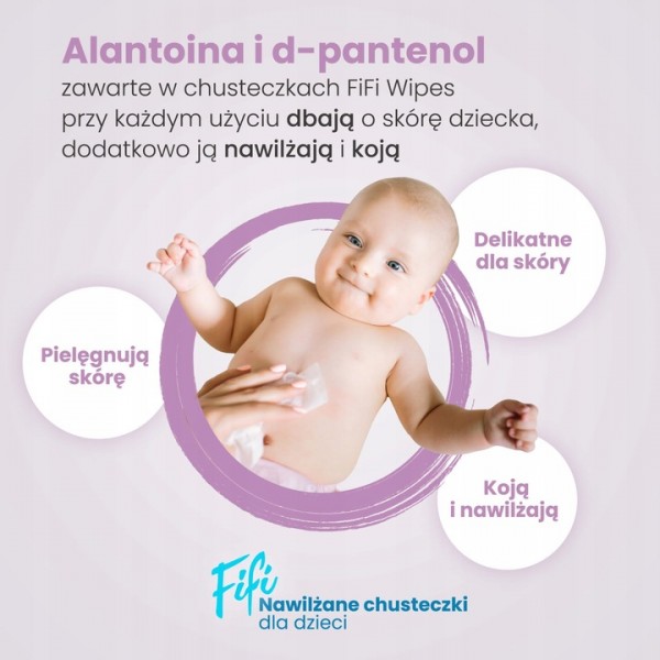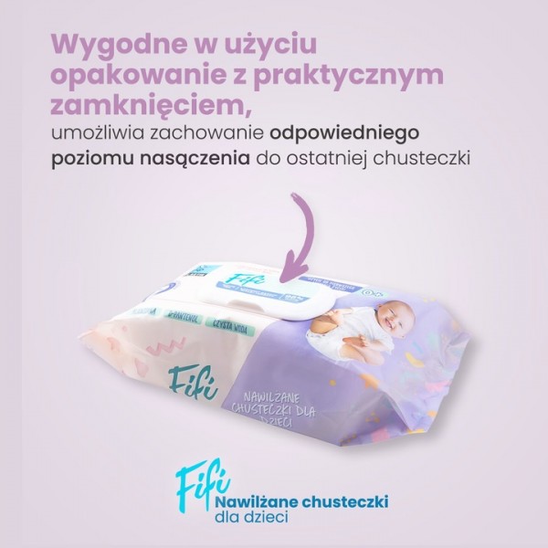 Chusteczki FiFi Wipes, to idealny sposób pielęgnacji delikatnej i wrażliwej skóry Twojego malucha. W trosce o najmłodszych stworzyliśmy produkt, który jest przeznaczony do stosowania już od pierwszego miesiąca życia dziecka.